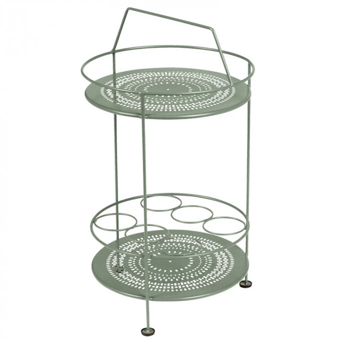 Le bar portatif sera idéal pour compléter votre mobilier de jardin Montmartre et se fondra parfaitement à votre décor. Ce petit bar s’avère très utile pour le service grâce à son porte-bouteille intégré, il vous sera possible de glisser vos bouteilles de vins ou carafes d’eau. Son double plateau en tôle acier perforée est également pratique pour disposer des objets de décoration ou condiments de cuisine. Très maniable car léger, ce bar portatif vous suivra partout.