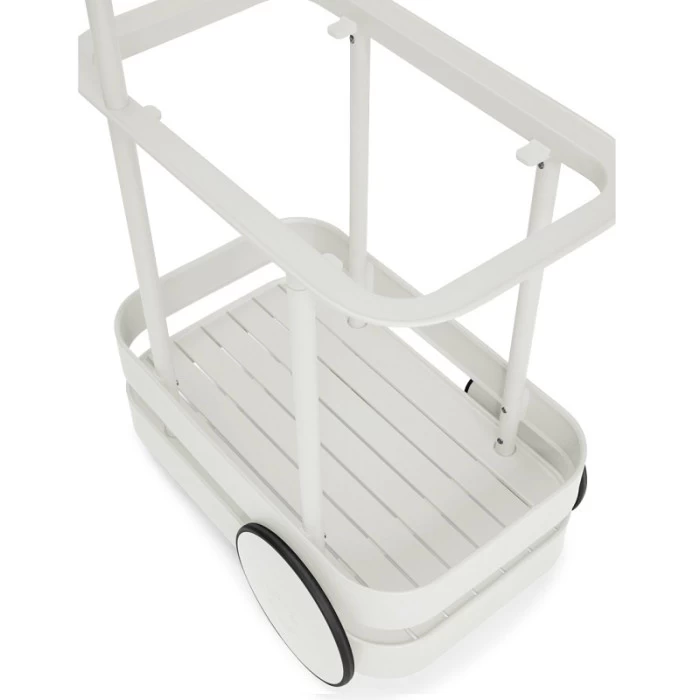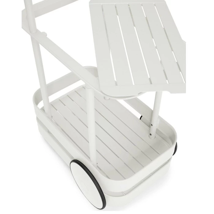 Pour une mobilité sans faille, déplacez Jolly de votre cuisine d’extérieur à la table, grâce à deux grandes roues arrières et à une petite roue avant. Vous pourrez ainsi également servir le repas à vos convives.