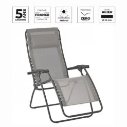 Élaboré dans l’usine française Lafuma à Anneyron, ce fauteuil est fabriqué à partir de matériaux de qualité, respectueux de l’environnement, lui valant les labels Garantie Origine France et Oeko-Tex.